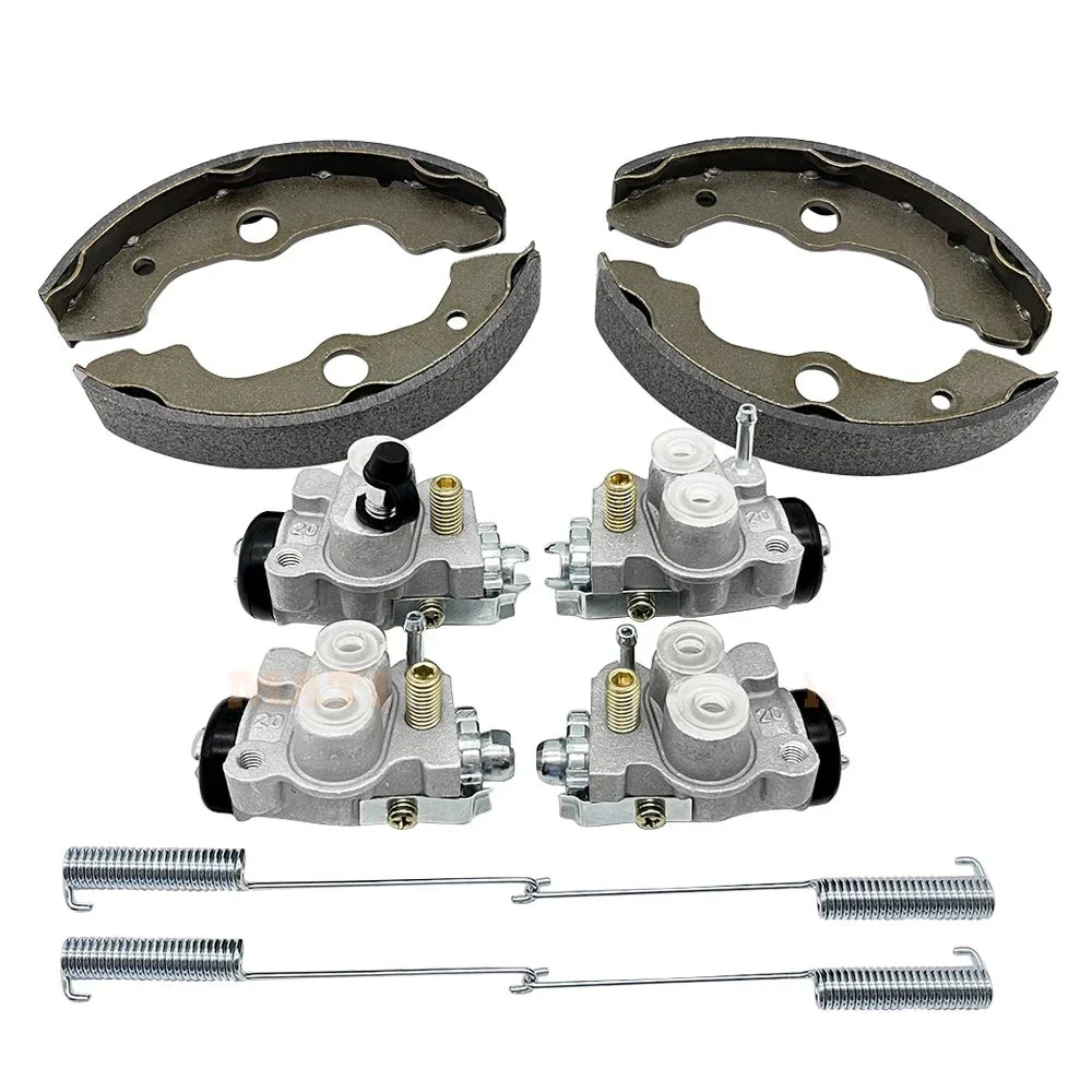 Front brake wheel cylinders (all 4) with brake shoes fit for Honda ATV OEM Part # 45310-HM7-006 45330-HM7-006 45350-HC5-971 45370-HC5-971 06450-HC5-900. High grade production standard with alloy piston and anti-ageing seal by rigorous testing. Make your ATV got more braking power and more stable.